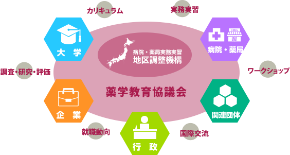 薬学教育協議会は、全国の薬科大学・薬学部、関係機関の協力のもとで活動しています。